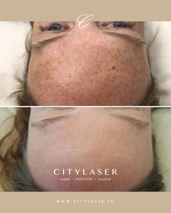 IPL – Behandlar ojämnt pigmenterad solskadad hud, ålderspigmentfläckar och fräknar. IPL är en högintensiv ljuslampa som riktas mot pigmentfläckarna och ett handstycke som avger korta ljuspulser flyttas över huden. Efter behandlingen ser man hur pigmentfläckarna blir mörkare och inom ett par dagar stiger pigmentet mot hudytan som små, små svarta korn som stöts av. Behandling med IPL är lite som varma stick, så det känns en del.