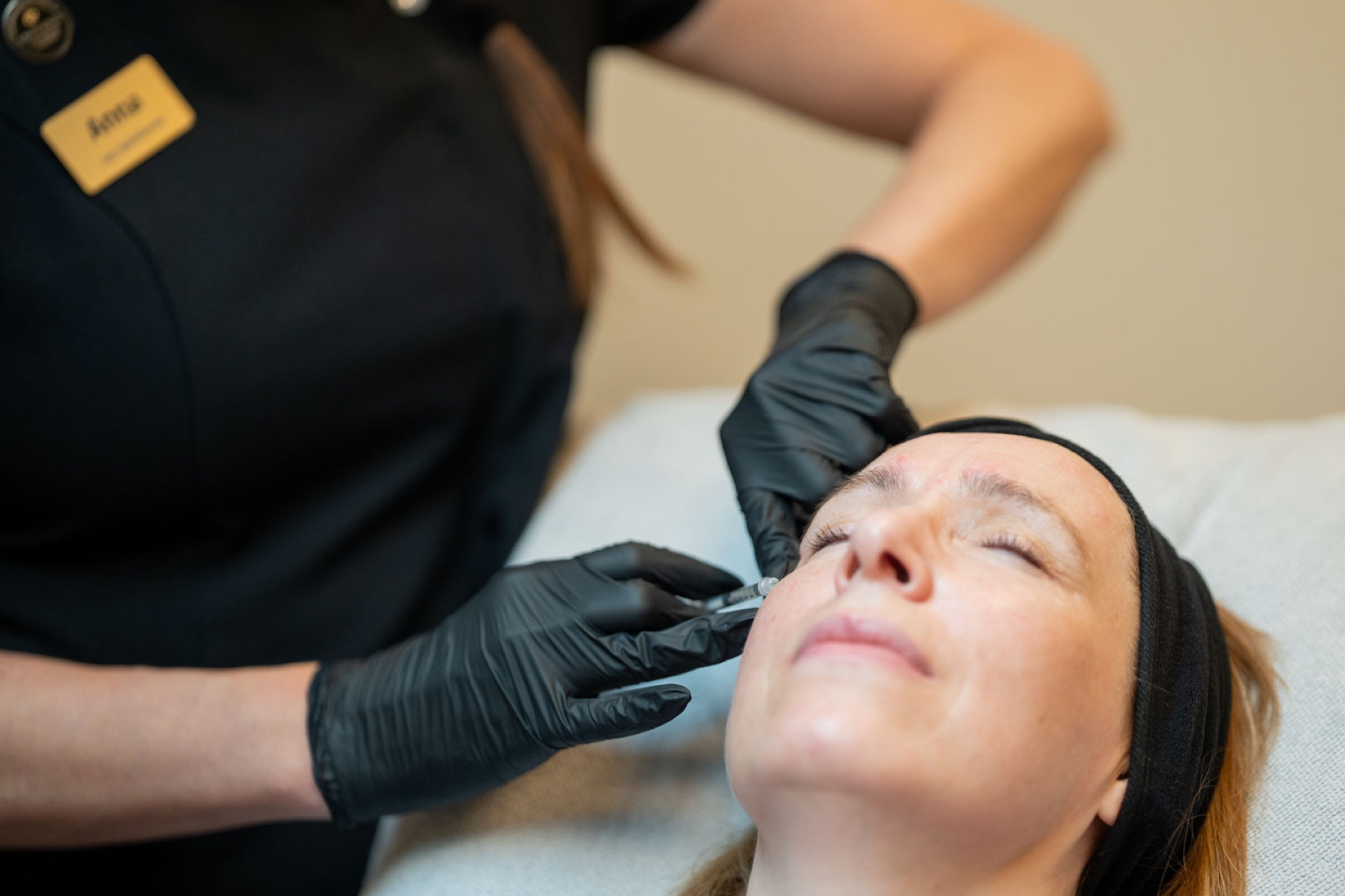 De vanligaste områdena att behandla är argrynkan som sitter mellan ögonen, pannan och ögonen för att ta bort kråksparkarna vi har därför valt att göra ett paketpris på dessa. Men det går bra att välja bara ett område om man vill det. Efter vi har spritat av huden används en mycket tunn nål som injicerar preparatet i flera små stick i det utvalda området. En behandling går ganska fort och känns inte speciellt. Detta är en behandling som kan göras när som helst på dagen då nålsticken är då små att det inte syns du kommer tillbaks till jobbet.